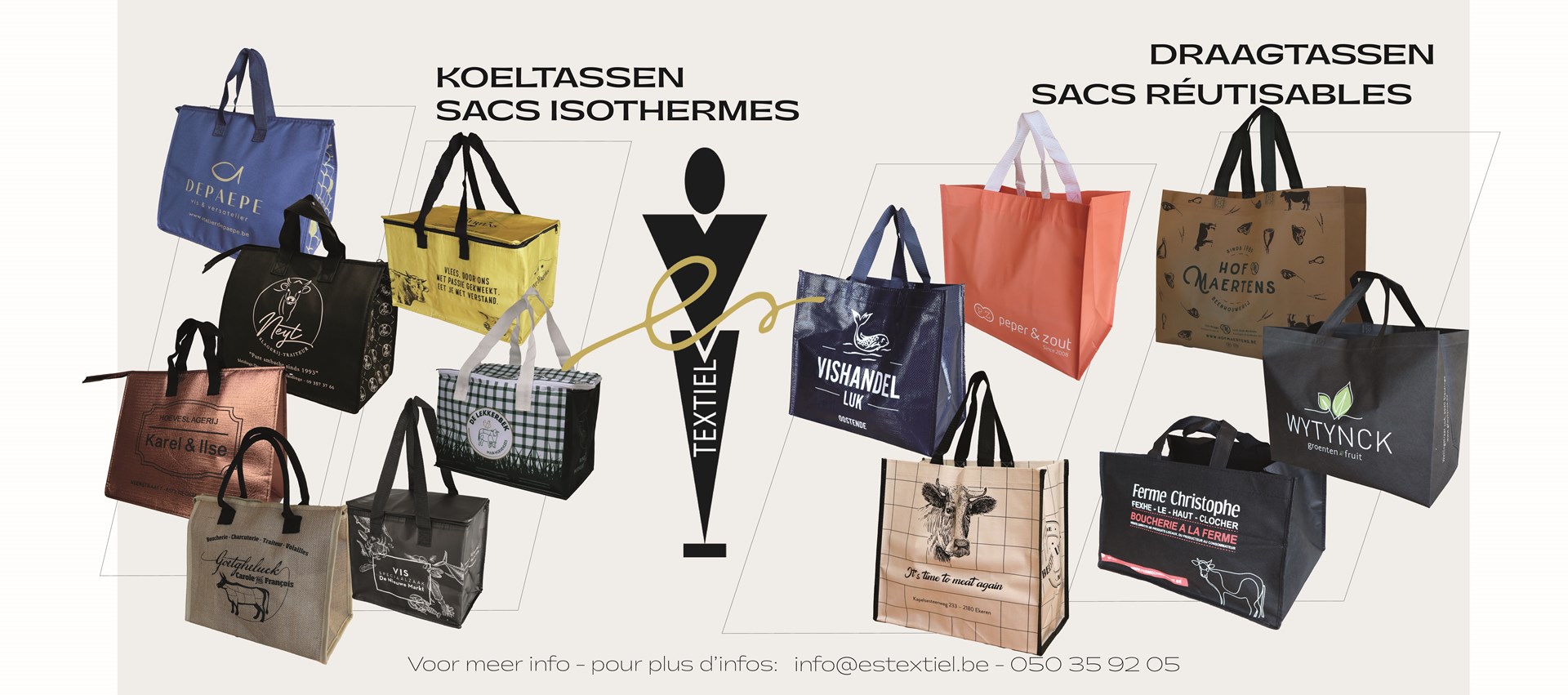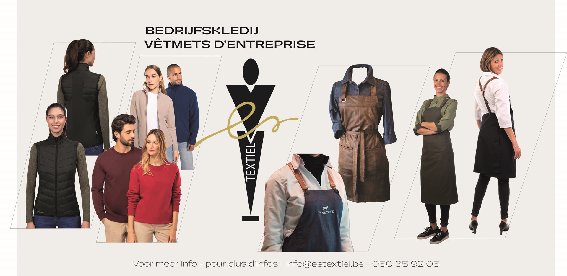 Vous cherchez des vêtements professionnels et promotionnels parfaitement adaptés à votre marque ? Chez ES Textiel, nous concevons des vêtements et accessoires personnalisés avec votre logo ou nom, fabriqués en Belgique. Découvrez nos tenues professionnelles élégantes et nos sacs personnalisés
