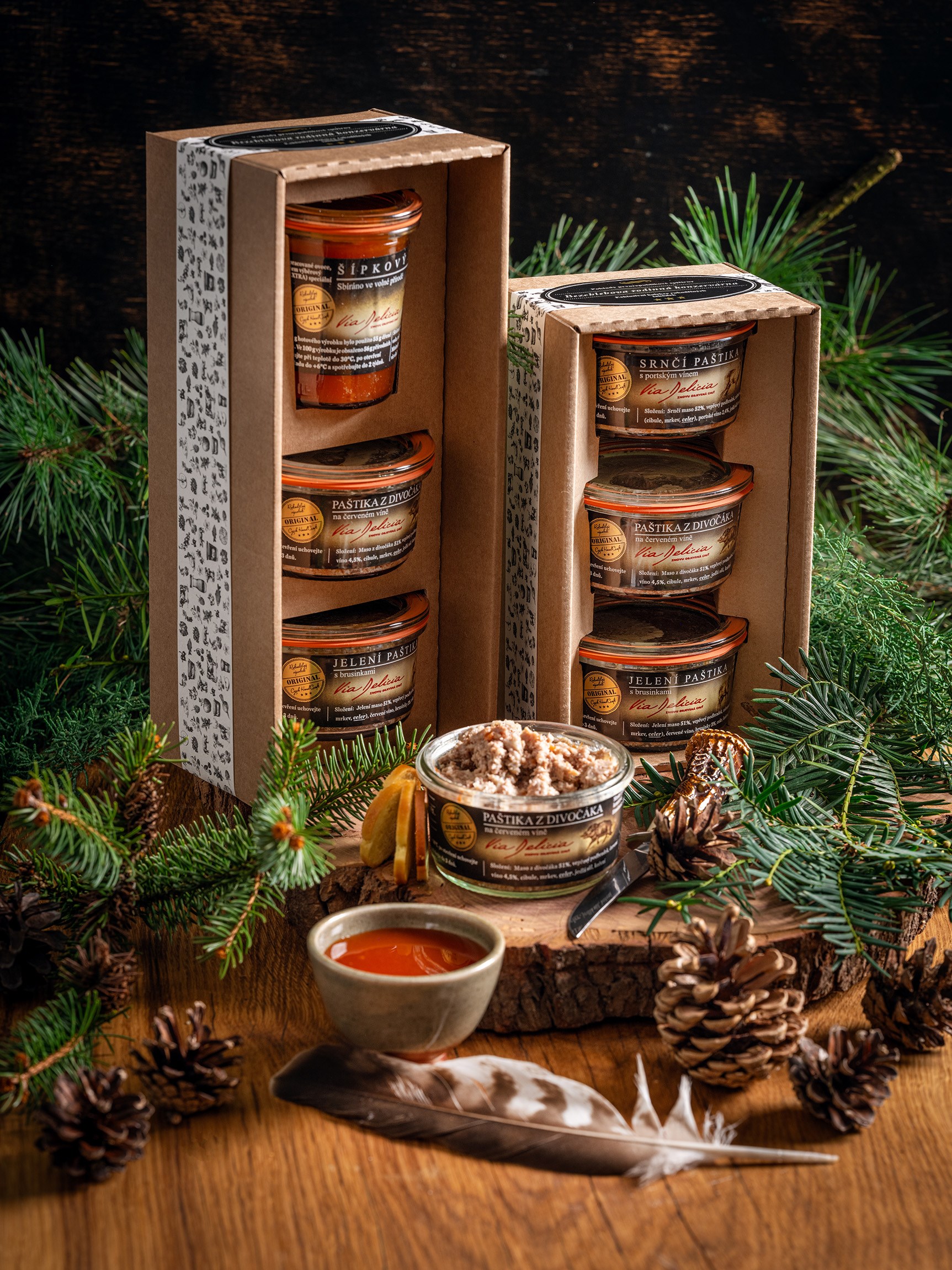 Via Delicia est une entreprise familiale de la République tchèque, spécialisée dans les produits gastronomiques artisanaux et les coffrets cadeaux gourmands fabriqués à partir d’ingrédients locaux de haute qualité. Nous créons des terrines et pâtés de gibier, des viandes mijotées en bocaux, des chutneys de légumes, des spécialités fermentées et des confitures premium.