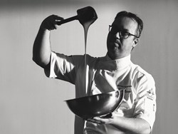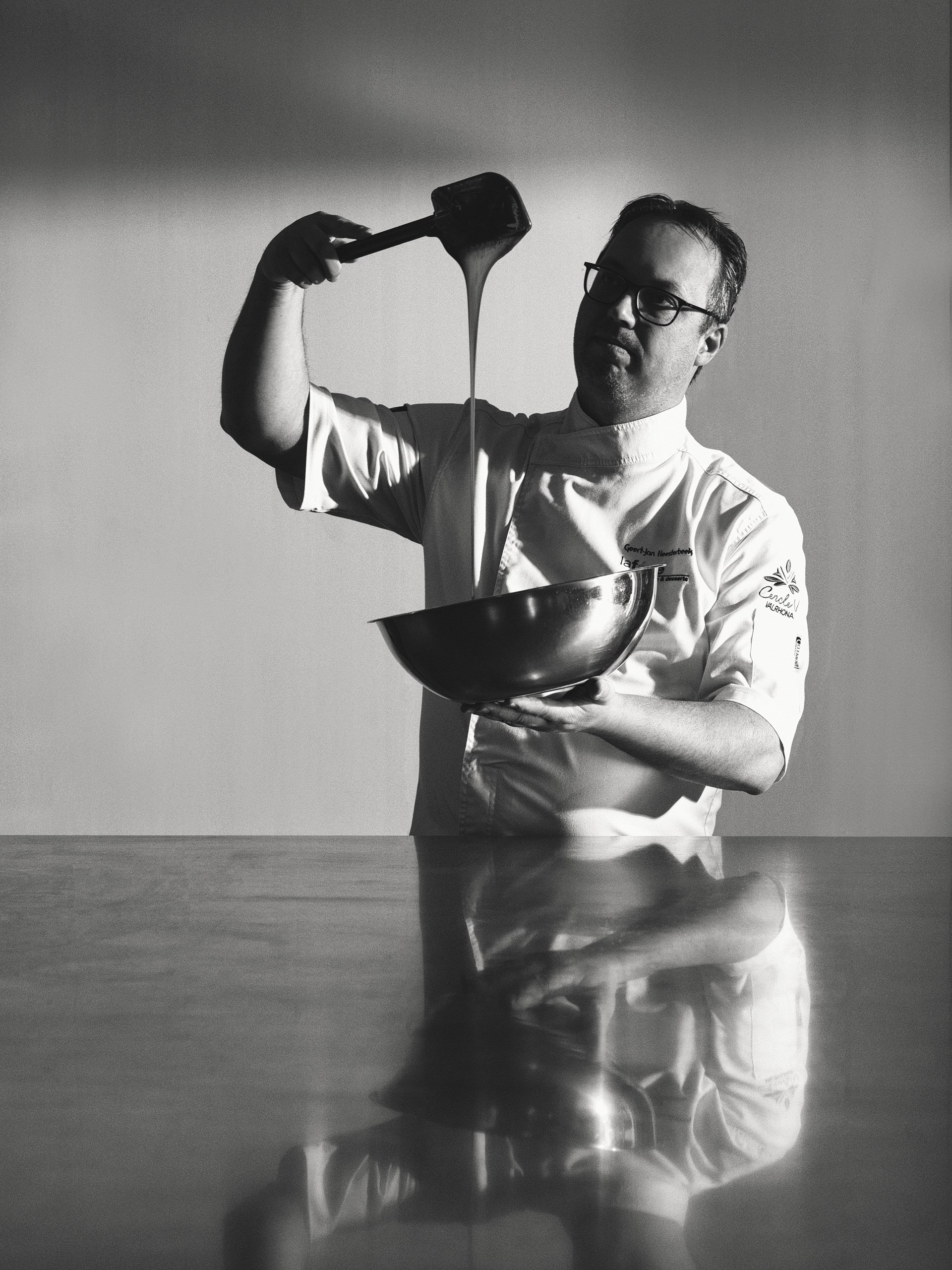 Demo van de Chocolade en dessert robot van Artiva door de Nederlandse topchocolatier Geert-Jan Heesterbeek van La Fève Chocolade & Desserts uit Maastricht.
